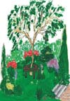 sadzonych krzewów i drzew iglastych takich jak: tuj, świerków, cyprysów, itp.